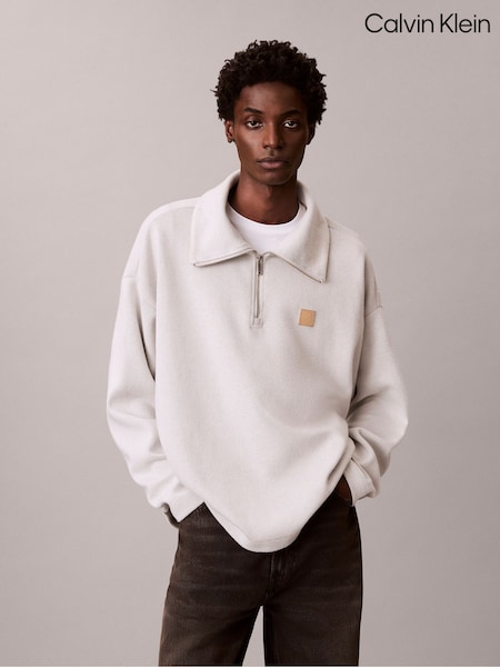 Calvin Klein White Brushed Rib 1/4 Zip Emblem Logo Sweatshirt