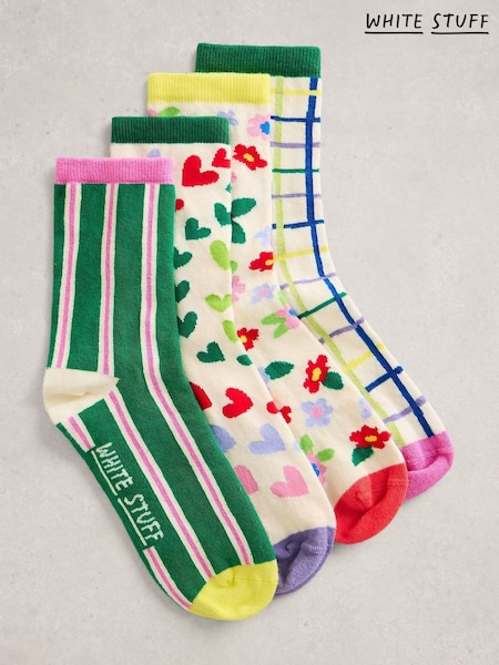 White Stuff Bright Green Ankle Socks 4 Pack
