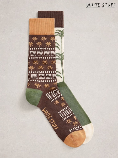White Stuff Green Palm Print Ankle Socks 2 Pack