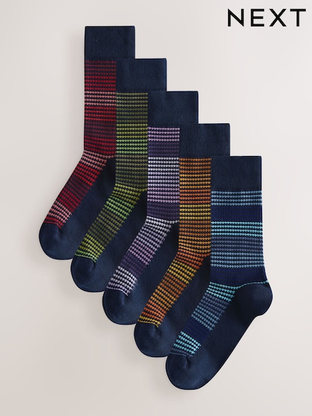 Navy Blue Textured Stripe Pattern Smart Socks 5 Pack