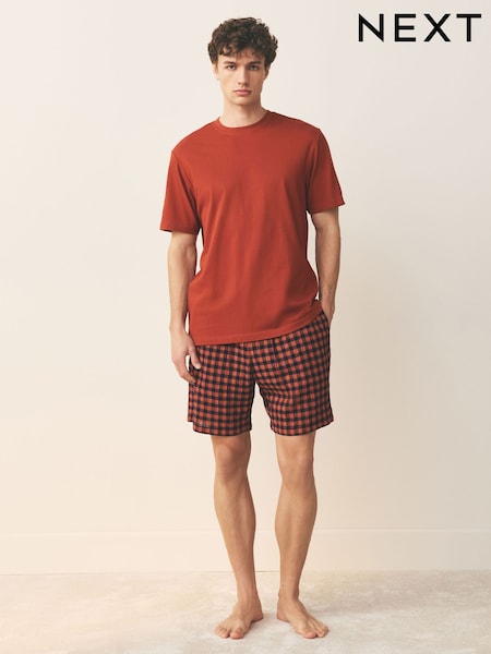 Rust Brown Check Short Sleeve Woven Pyjamas Set