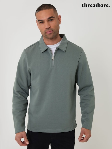 Threadbare Blue Quarter Zip Long Sleeve Polo Sweatshirt