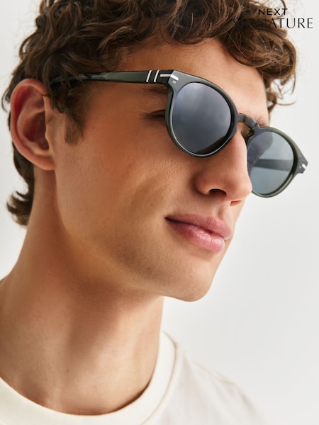Mineral Green Signature Preppy Round Acetate Frame Polarised Sunglasses