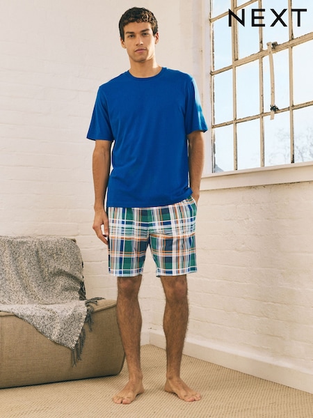 Blue/ Green Check Jersey Short Sleeve Pyjamas Set