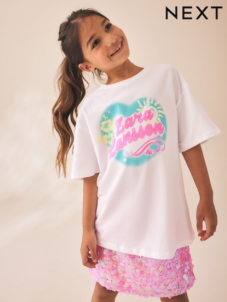White Zara Larsson Oversized Graphic T-Shirt (3-16yrs)