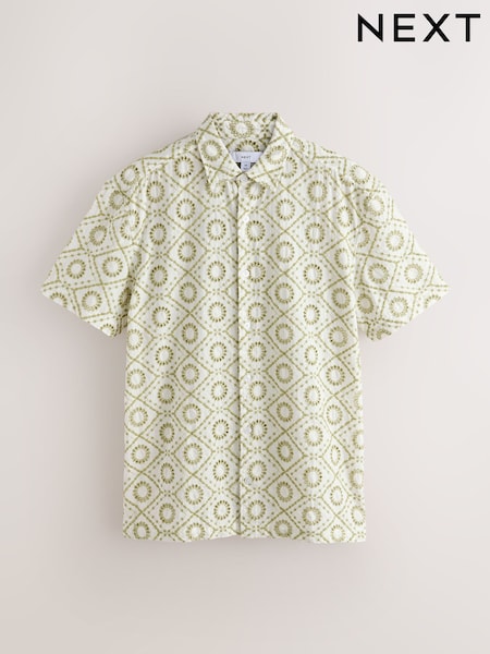 Green Broderie Broderie Patterned Short Sleeve Shirt