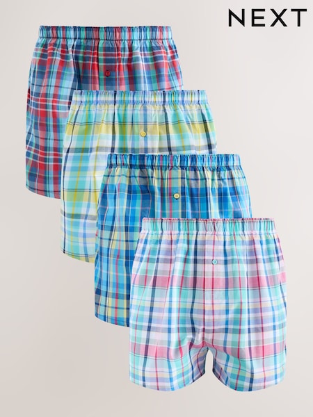 Red/Blue Madras Check 4 pack Woven Pure Boxers