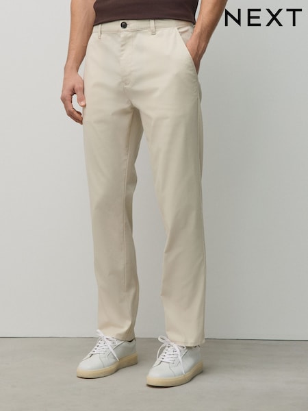 Ecru White Slim Fit Cotton Rich Stretch Chinos