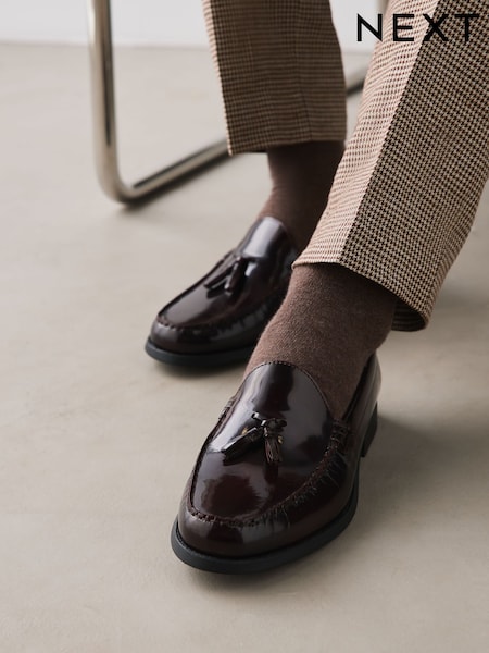 Burgundy Red Leather Tassel Loafers