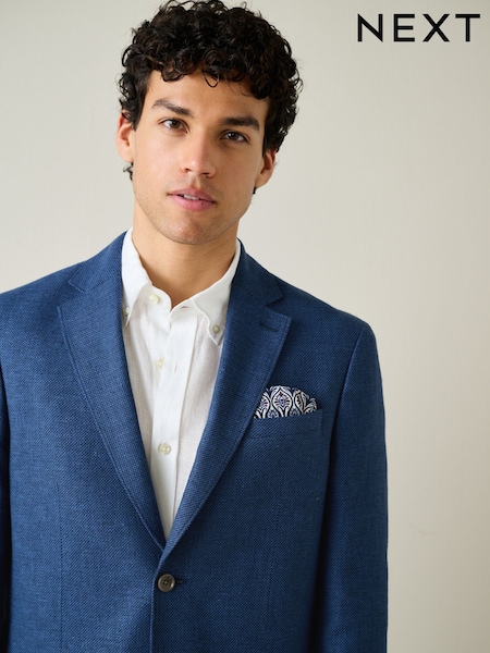 Bright Blue Regular Fit Textured Linen Blend Blazer