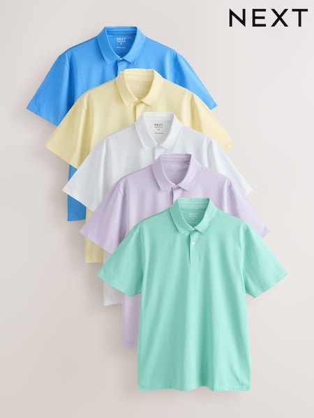 White/Yellow/Pink/Green/Lilac Regular Fit Motionflex Short Sleeve Jersey Polo Shirts 5 Pack