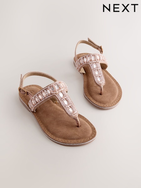 Rose Gold Standard Fit (F) Leather Woven Sandals