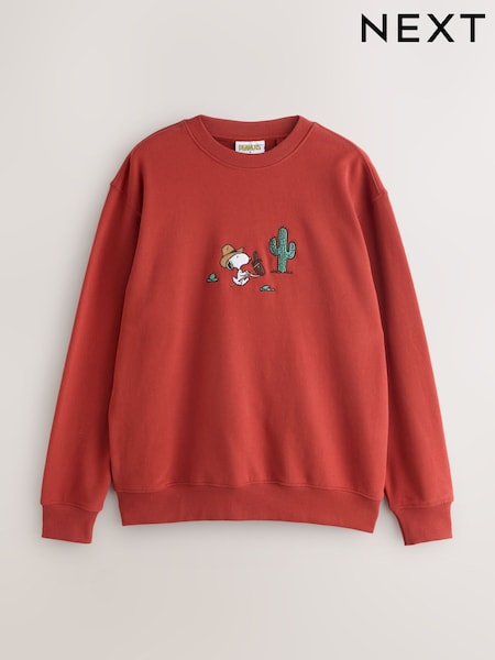Dark Red Snoopy Licence Graphic Washed Crew Neck Sweatshirt