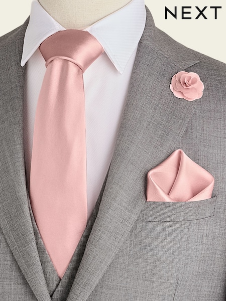 Coral Pink Silk Tie Pocket Square and Pin Set