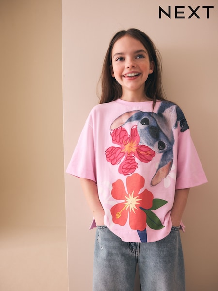 Pink Embroidered License Stitch Oversized Boxy T-Shirt (3-16yrs)
