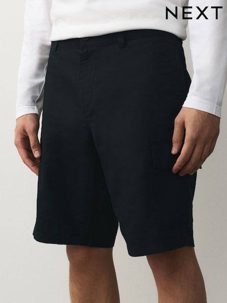 Black Cotton Linen Blend Cargo Shorts
