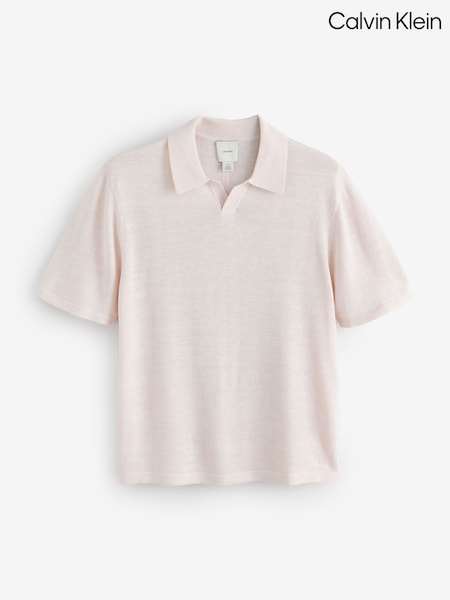 Calvin Klein Pink Linen Blend Crew Neck Polo Shirt