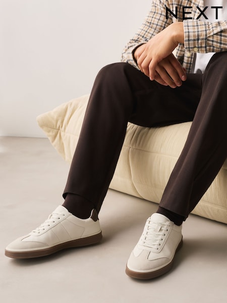 Cream Smart Casual Lace-Up Trainers with Suede Trim