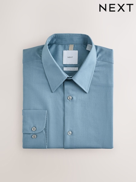 Teal Blue Regular Fit Cotton Rich Textured Easy Care Smart Shirt
