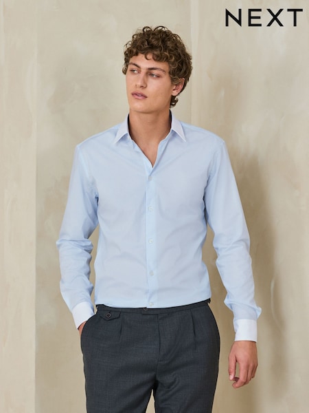Blue/White Slim Fit Cotton Stretch Long Sleeve Formal Shirt