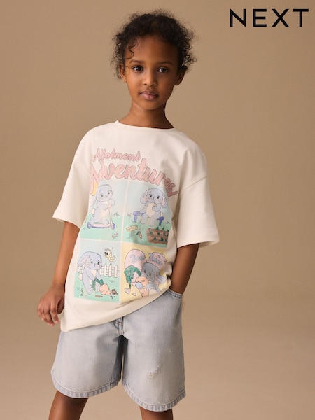 Ecru Easter Bunny Oversized Graphic Print T-Shirt (3-16yrs)