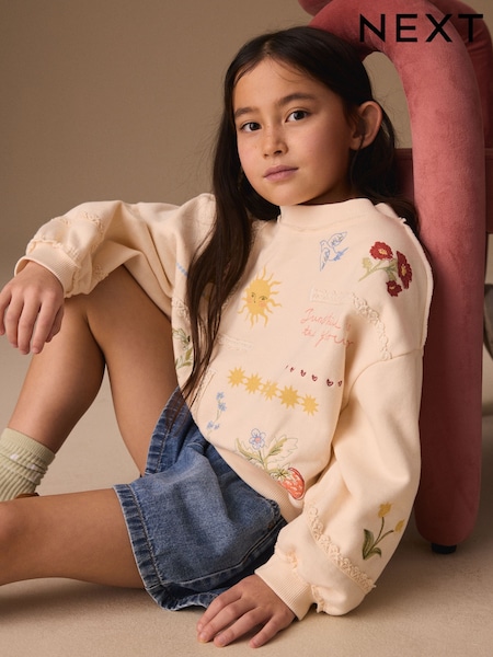 Cream Embroidered Detail Floral Sweatshirt (3-16yrs)