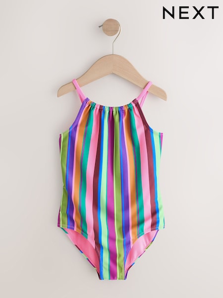 Multi Rainbow Stripe Strappy Ruched Swimsuit (3-16yrs)