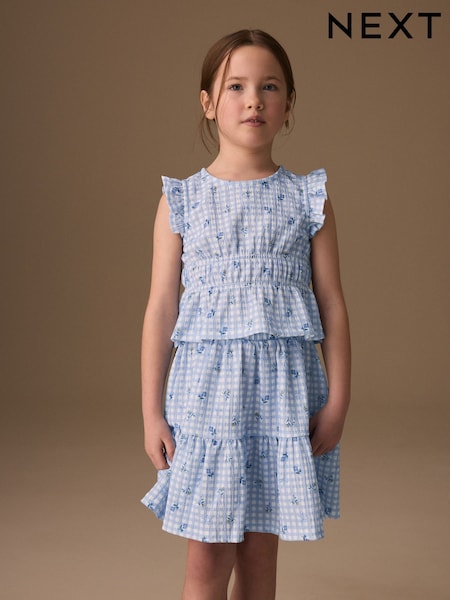 Blue Gingham Top And Skirt Set (3-16yrs)