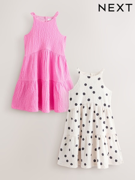 Pink/Cream Strappy Crinkle Summer Dress 2 Pack (3-16yrs)