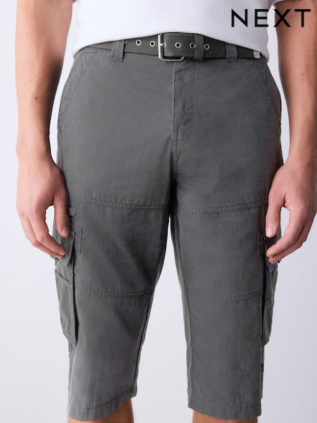 Charcoal Grey Long Length Belted Cargo Shorts