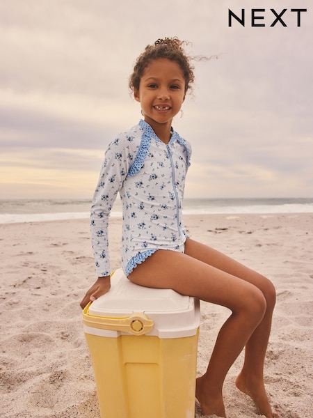 Blue/White Floral Polka Dot Long Sleeve Sunsafe Swimsuit (3mths-16yrs)
