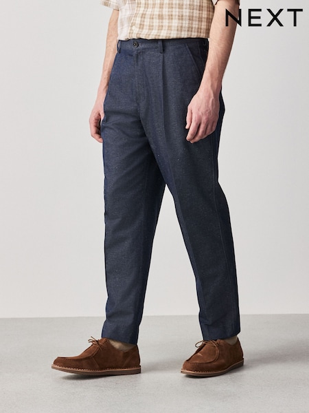 Navy Blue Relaxed Fit Cotton Linen Blend Suit Trousers