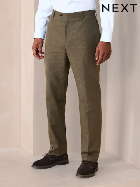 Green Regular Fit Trimmed Linen Blend Puppytooth Suit Trousers