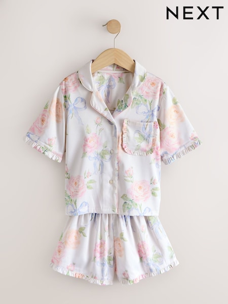 Ecru/Pink Satin Short Button Through Pyjamas (3-16yrs)