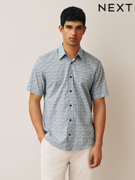 Blue Ditsy Slim Fit Cotton Short Sleeve Print Shirt