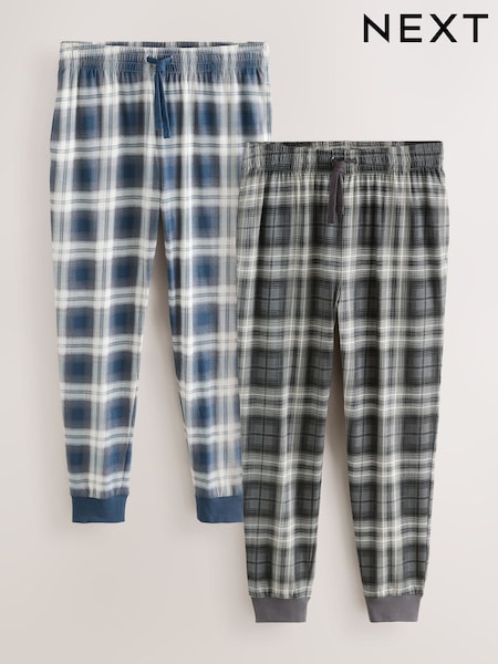 Black/Navy Blue Check Open Hem Jersey 100% Cotton Pyjama Bottoms 2 Pack