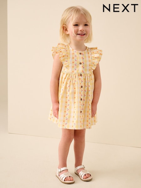 Pastel Yellow Check Frill Sleeve Dress (3mths-8yrs)