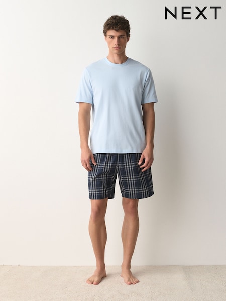 Blue Woven Short Sleeve Pyjamas Set