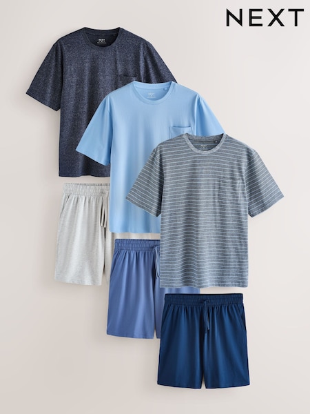 Blue/Grey Stripe Short Sleeve Jersey Pyjamas Set 3 Pack