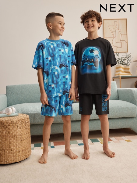 Blue/Black Gamer Football Short Pyjamas 2 Pack (3-16yrs)