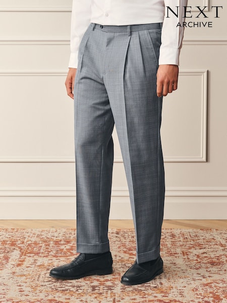 Grey Relaxed Fit Archive Pleated Puppy Tooth Wool Blend Suit Trousers