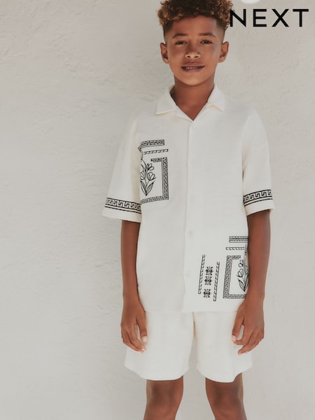 Ecru White Revere Button Through Shirt and Shorts Set (3-16yrs)