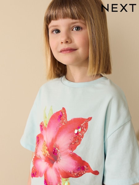 Blue Hibiscus Sequin Graphic T-Shirt (3-16yrs)