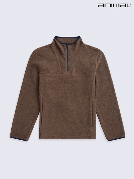 Animal Brown Alfie Borg Contrast Trim Half Zip Fleece