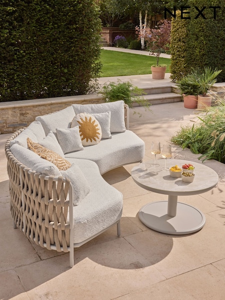 Natural Boucle Genoa Outdoor Garden Corner Sofa and Table Set