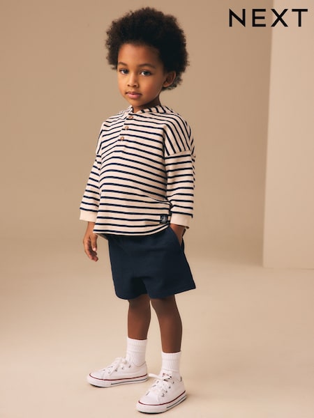 Ecru White Striped Textured Sweat Top and Shorts Set (3mths-7yrs)