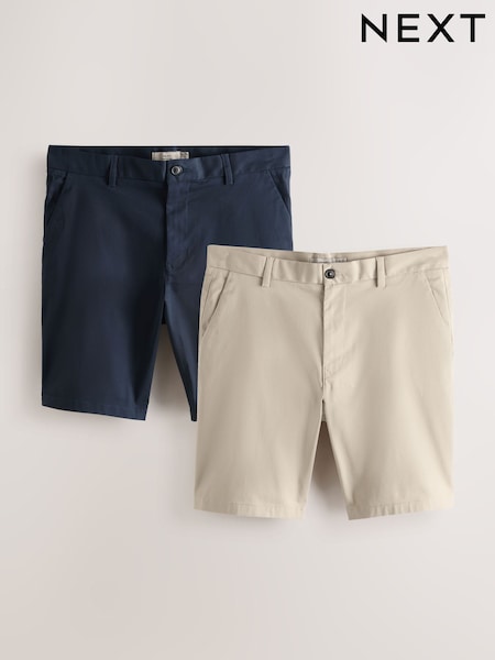 Navy/Stone Slim Fit Stretch Chino Shorts 2 Pack