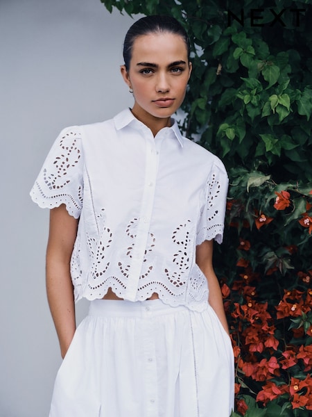 White Broderie Short Sleeve Shirt