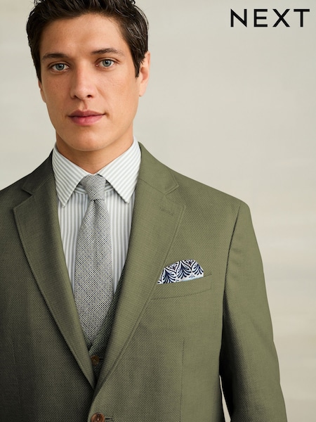 Green Regular Fit Textured Linen Blend Blazer