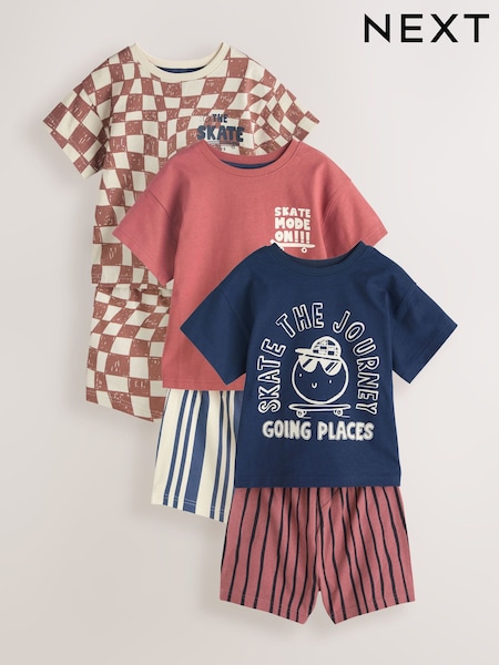 Black/Berry Checkerboard Skate Short Pyjamas 3 Pack (9mths-10yrs)
